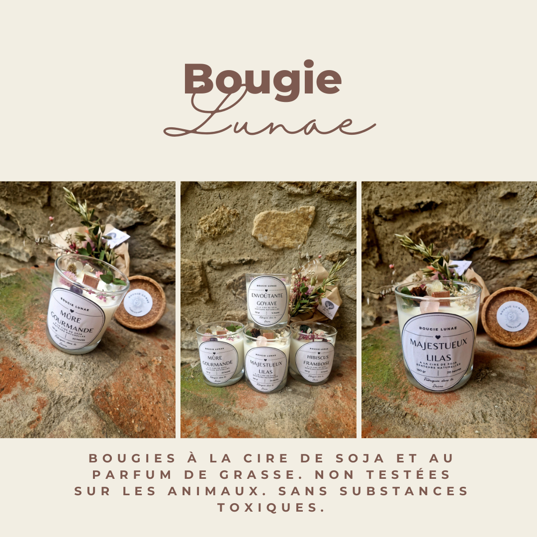 Grâce à notre cire de soja, nos bougies brûlent proprement, sans produire de substances nocives.